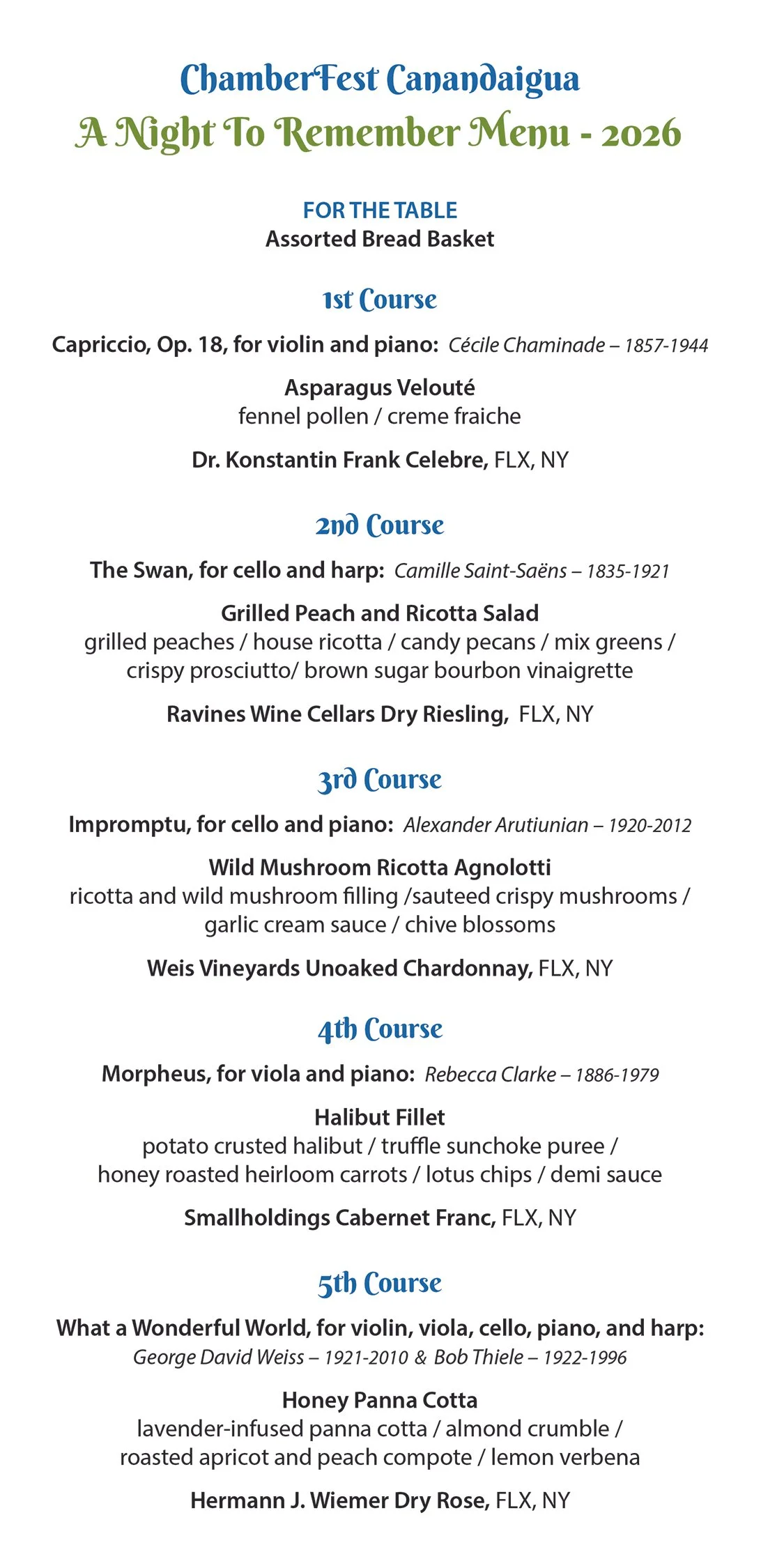 See Repertoire, 5-Course Menu, and Wine Pairings Below…